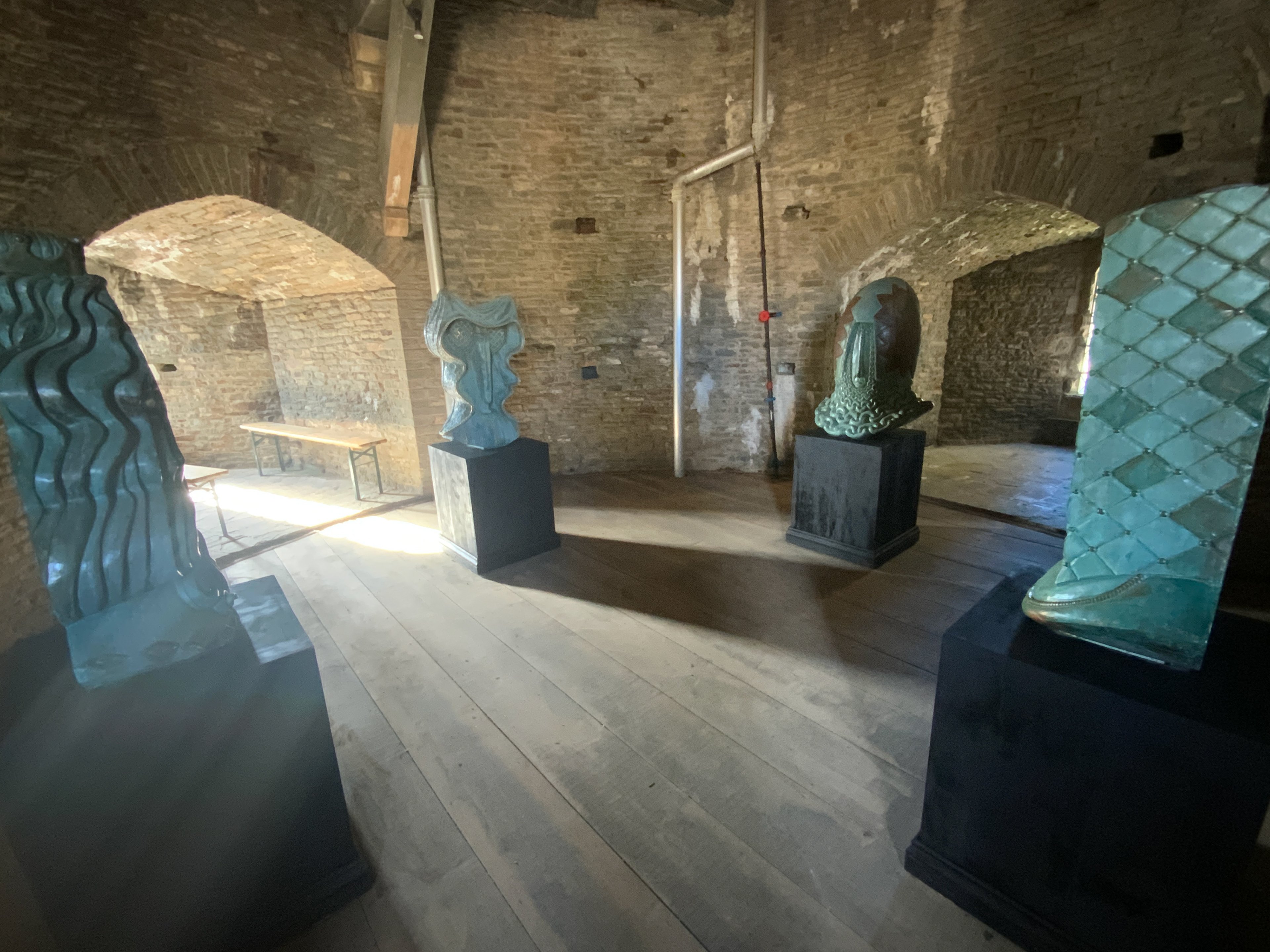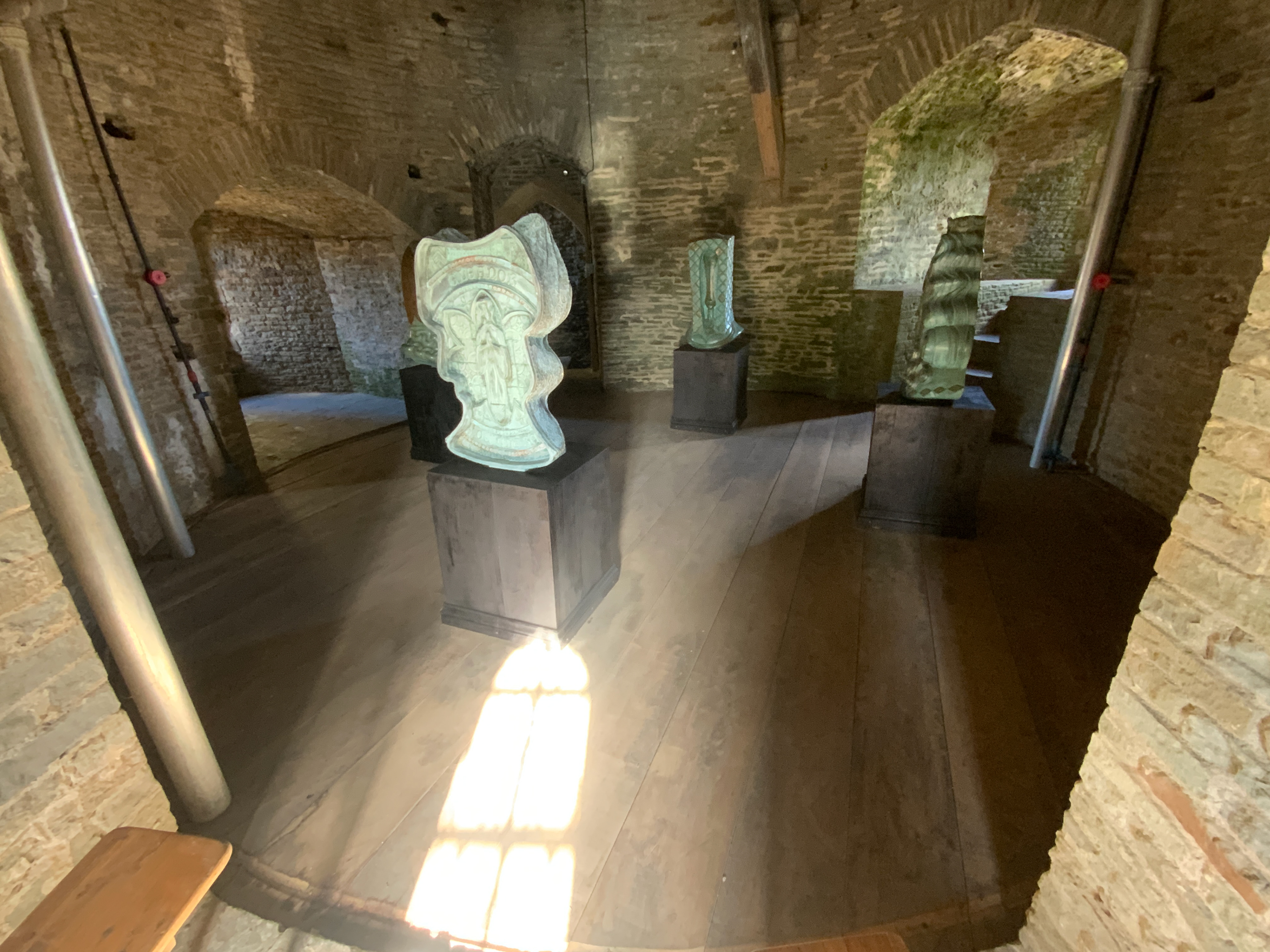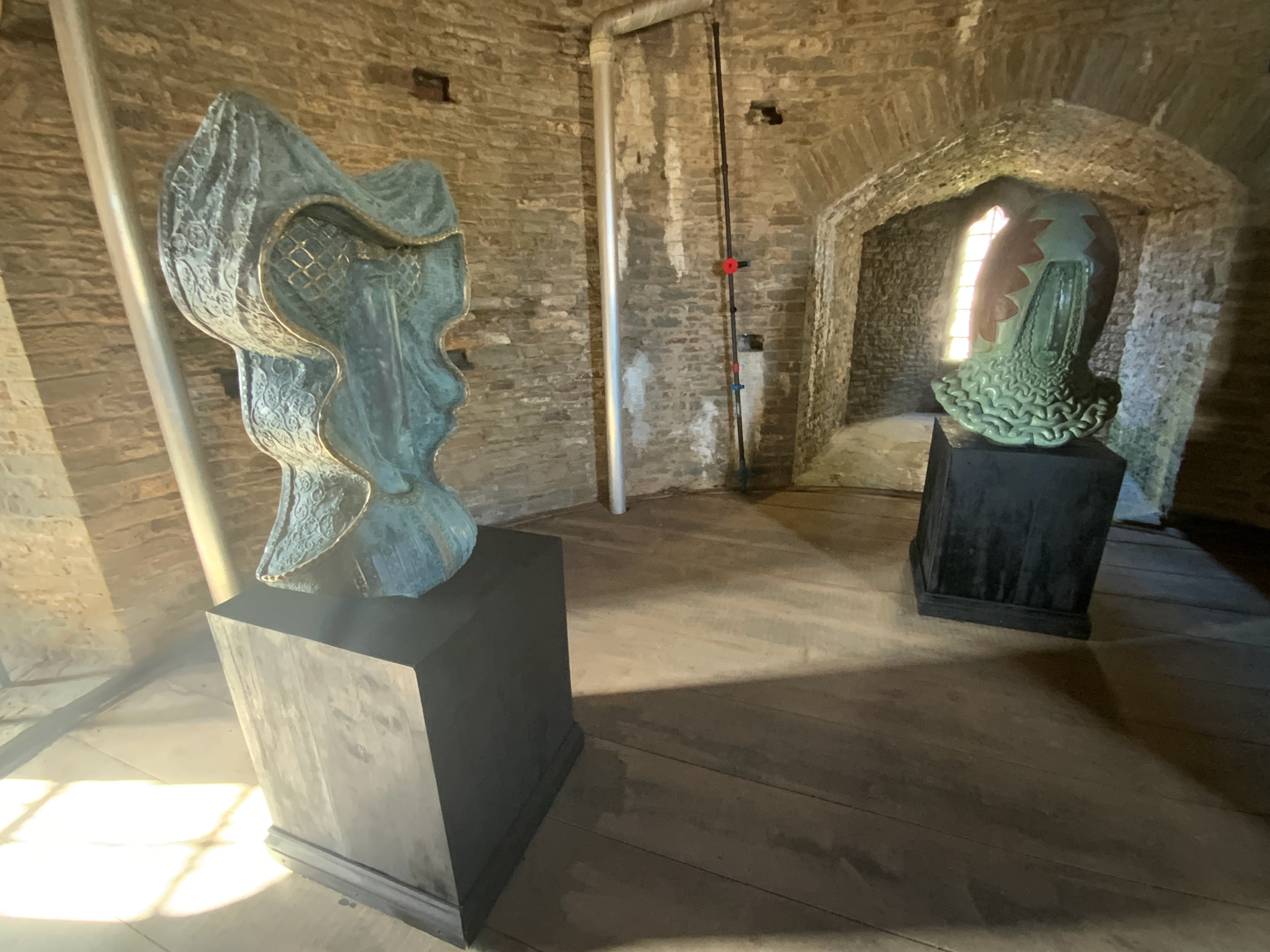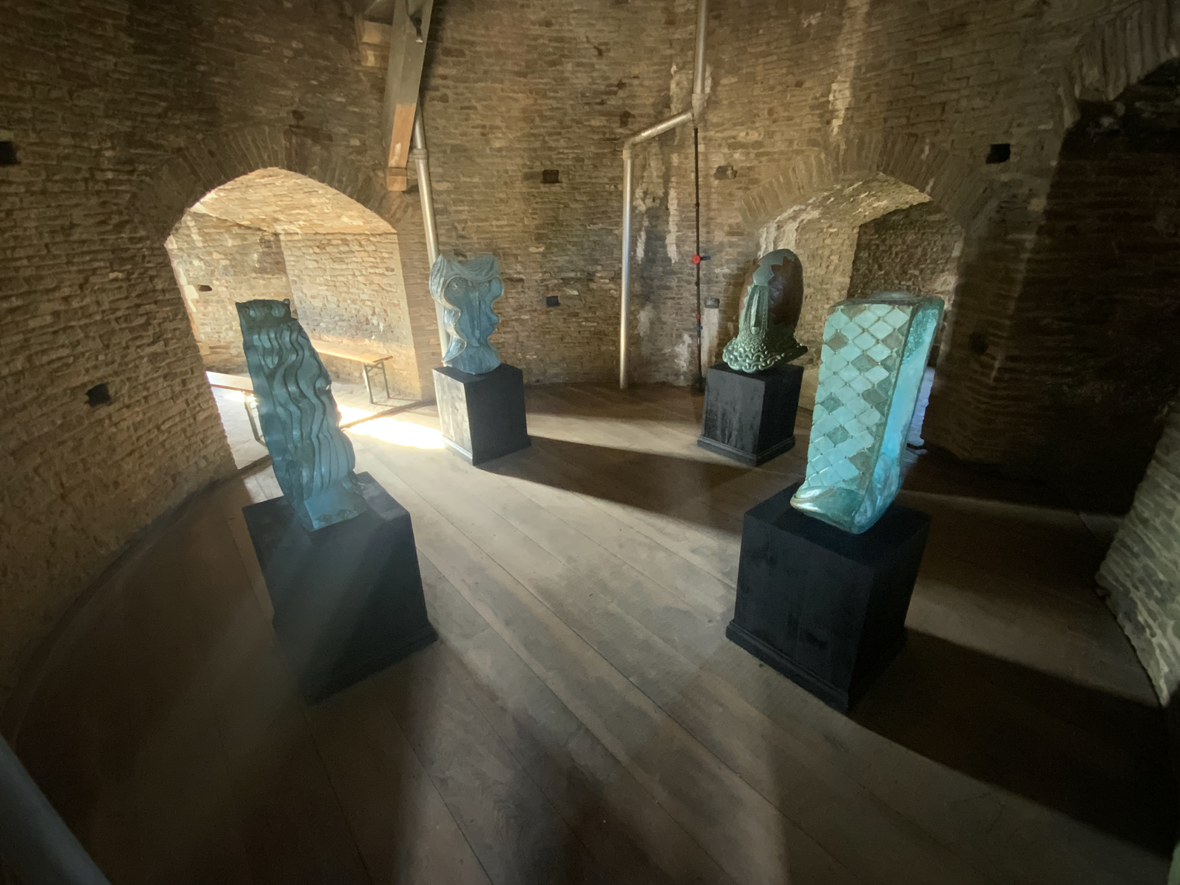 Commissioned by CADW in 2024 this stylised portrait of Eleanor de Clare was modelled in clay and cast in bronze effect jesmonite resin with gold leaf detailing. Installed inside Caerphilly castle, it replaces the previous portrait of Gilbert de Clare and is joined by previous portraits of Hugh le despencer, King Edward the 2nd and Isabella De Clare.