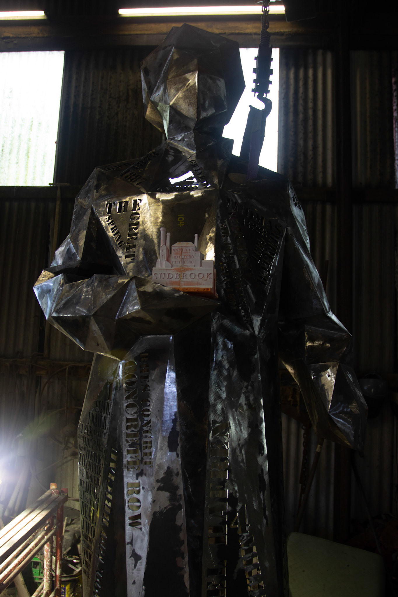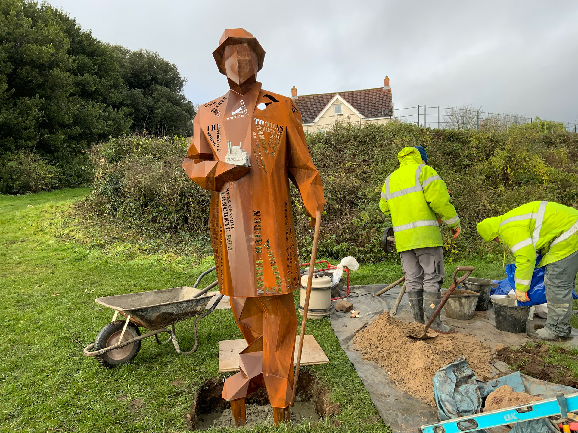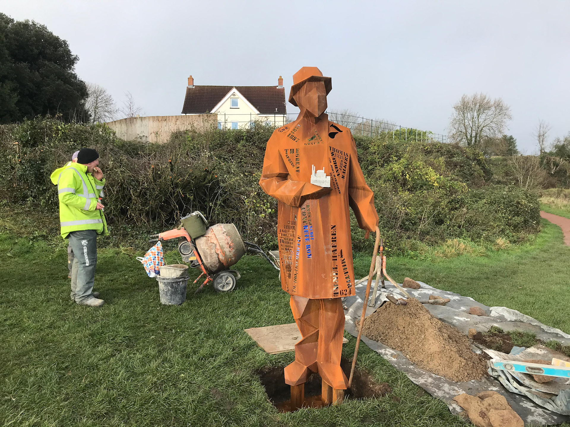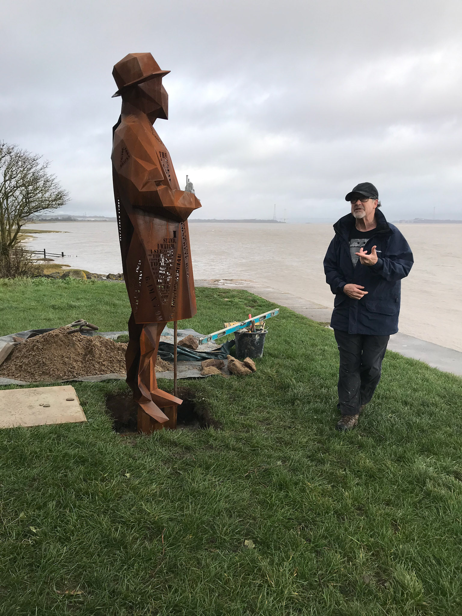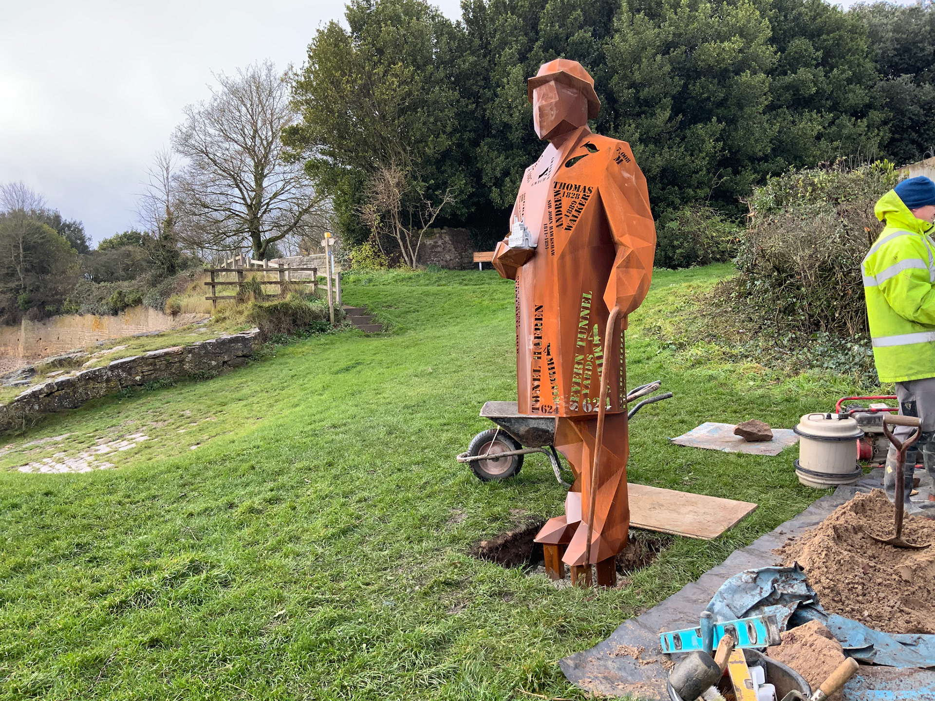Commissioned by Living Levels ( https://www.livinglevels.org.uk ) this 2.4m tall fabricated Corten sculpture titled, 'The Engineer' represents Thomas Walker, who was the civil engineer that completed the Severn tunnel and founded the hamlet of Sudbrook. Installed in 2021 the sculpture stands between the two Severn bridges at Blackrock picnic site overlooking the river.