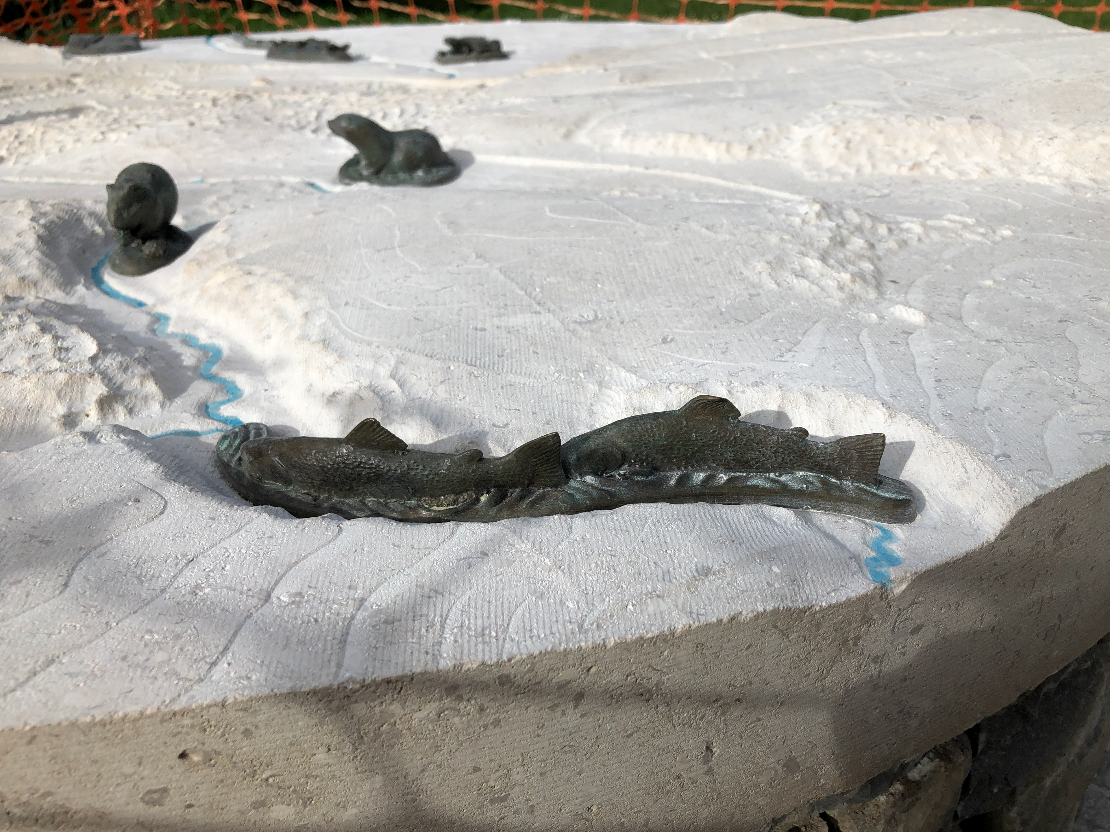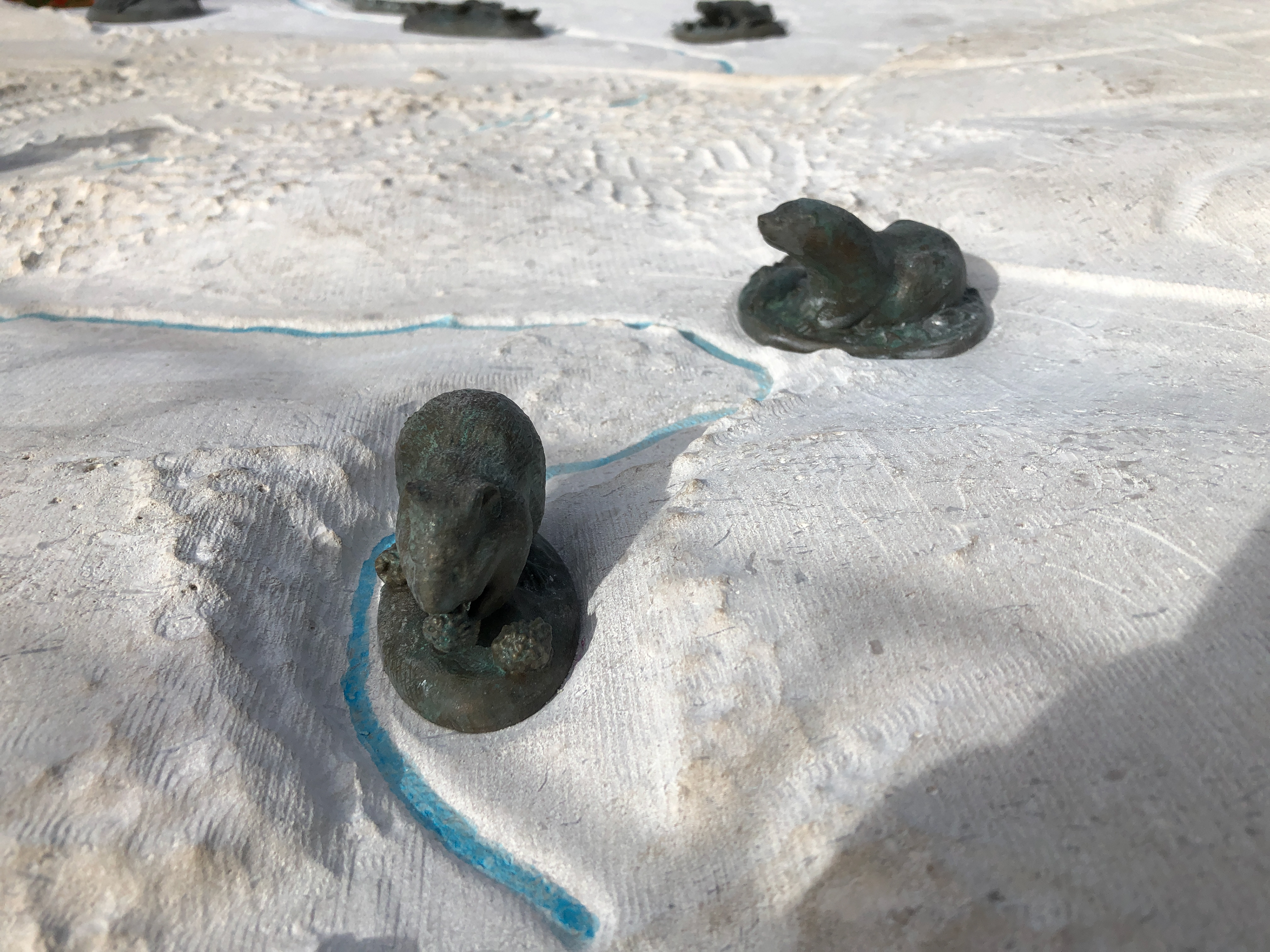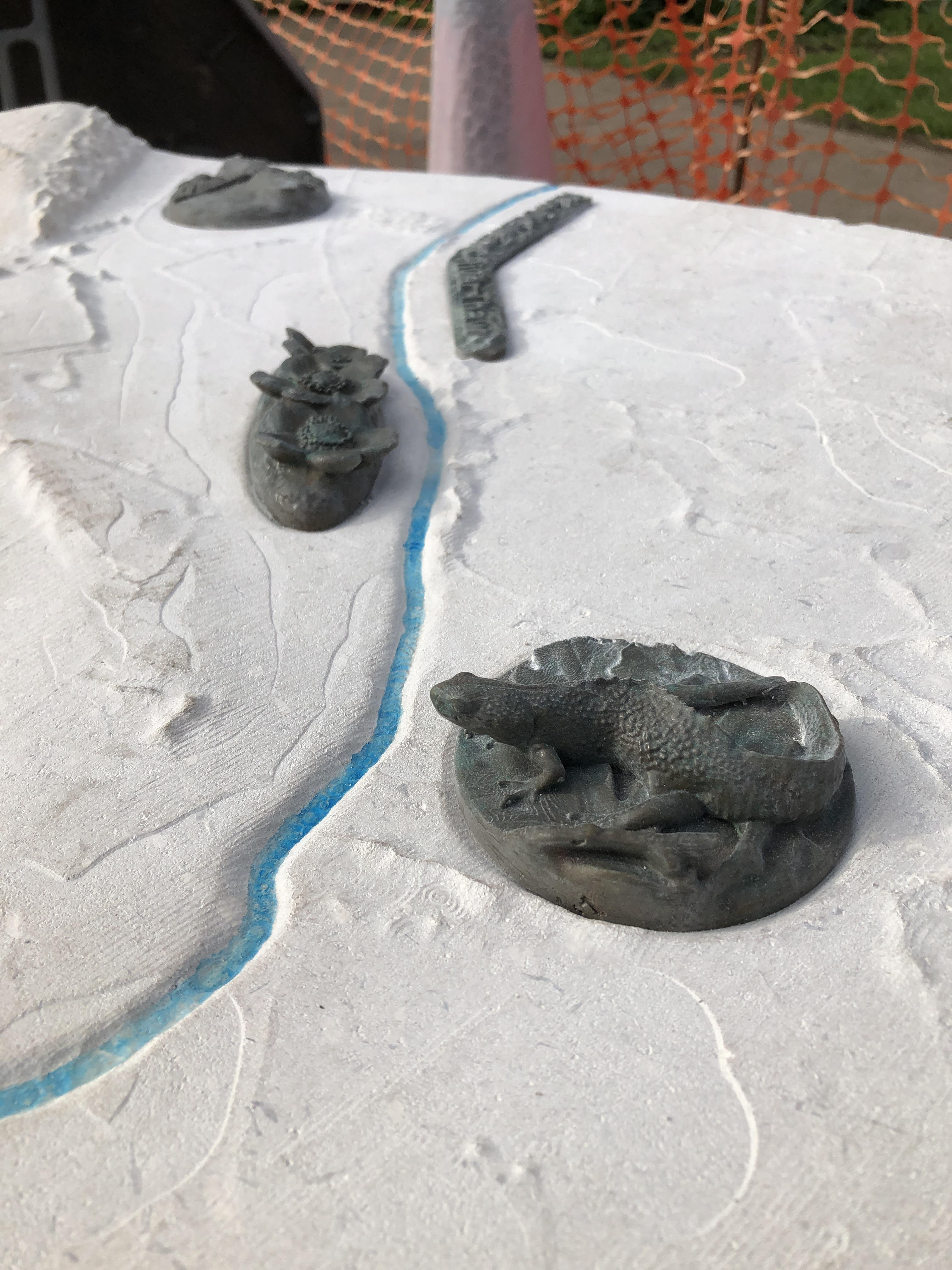 Commissioned by the Vale of Glamorgan county Council this 1.5m diameter 3D map was produced to highlight the work carried out by the Restore the Thaw Landscape project. The map shows the route of the river Thaw through Cowbridge town and the surrounding landscape and set along it are a series of bronzes reflecting local flora and fauna.
