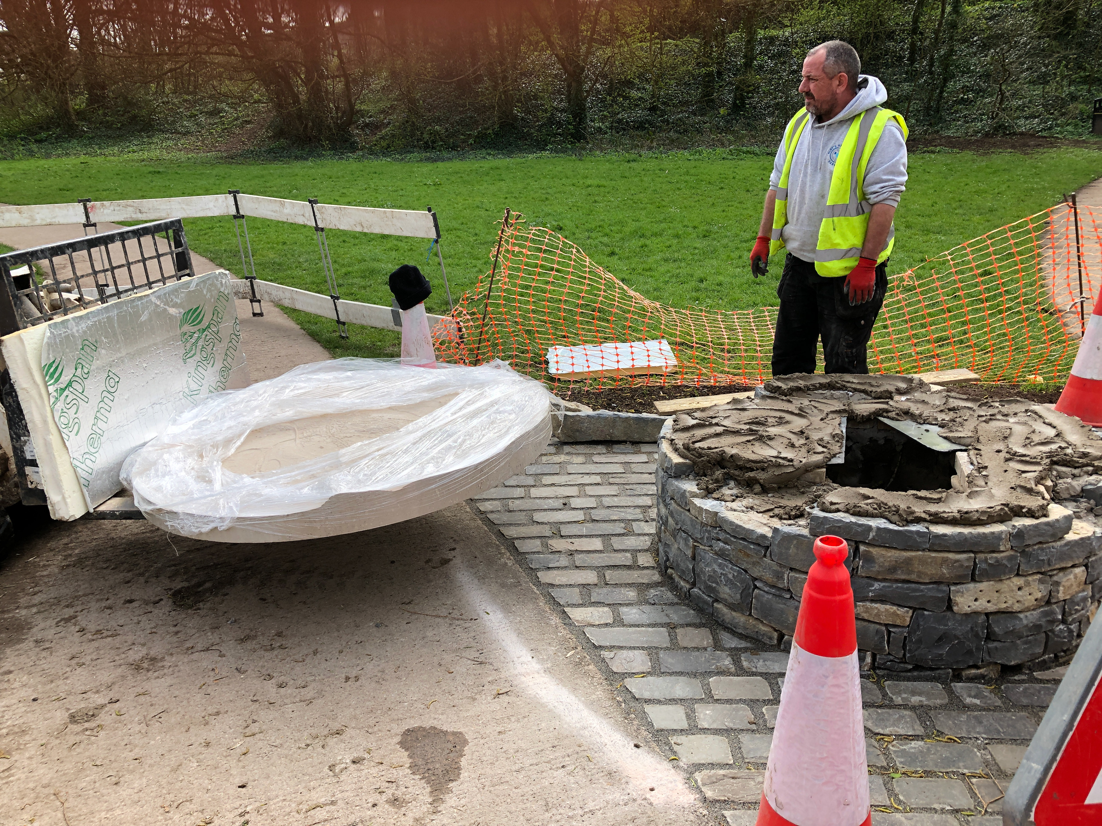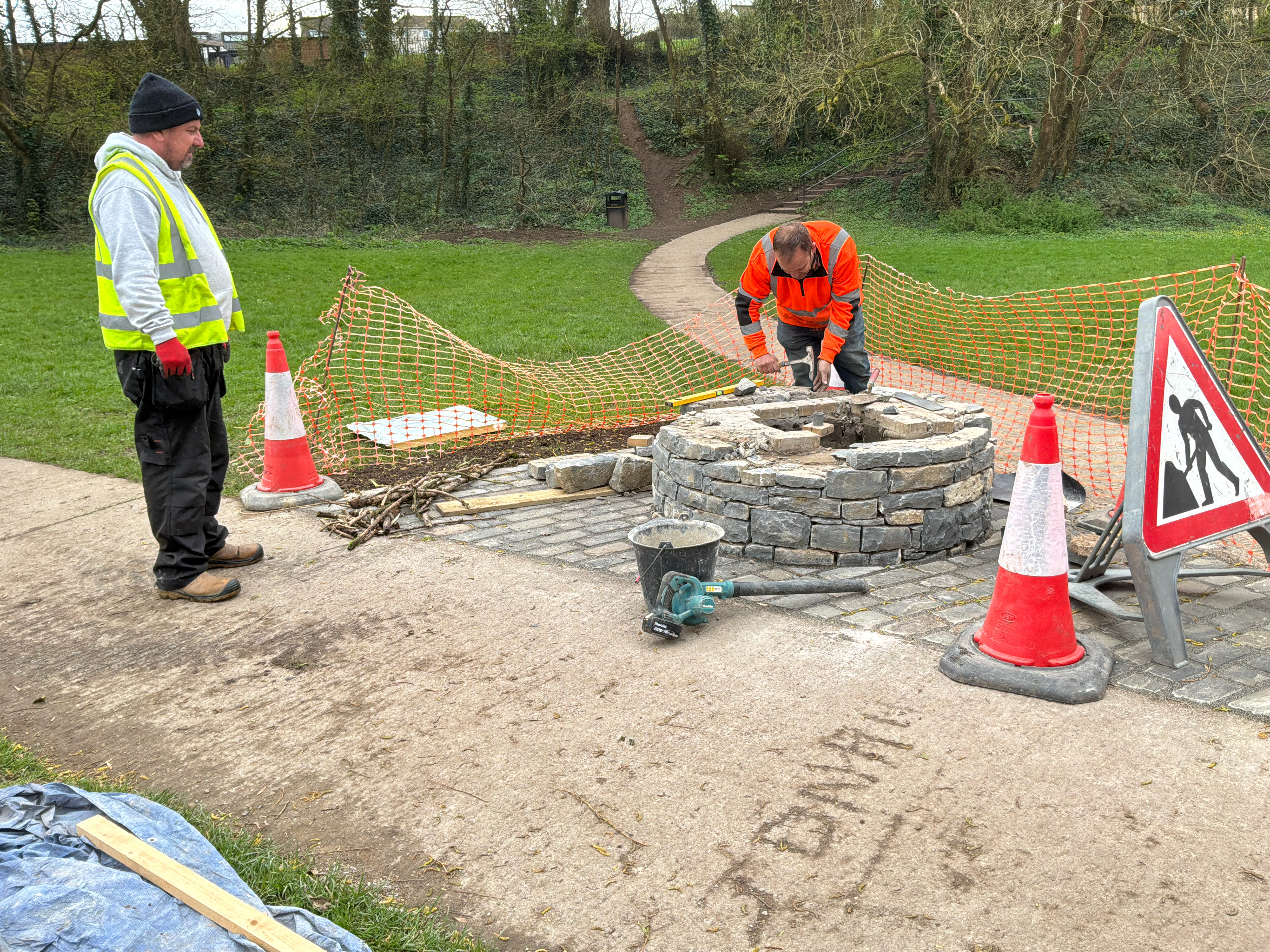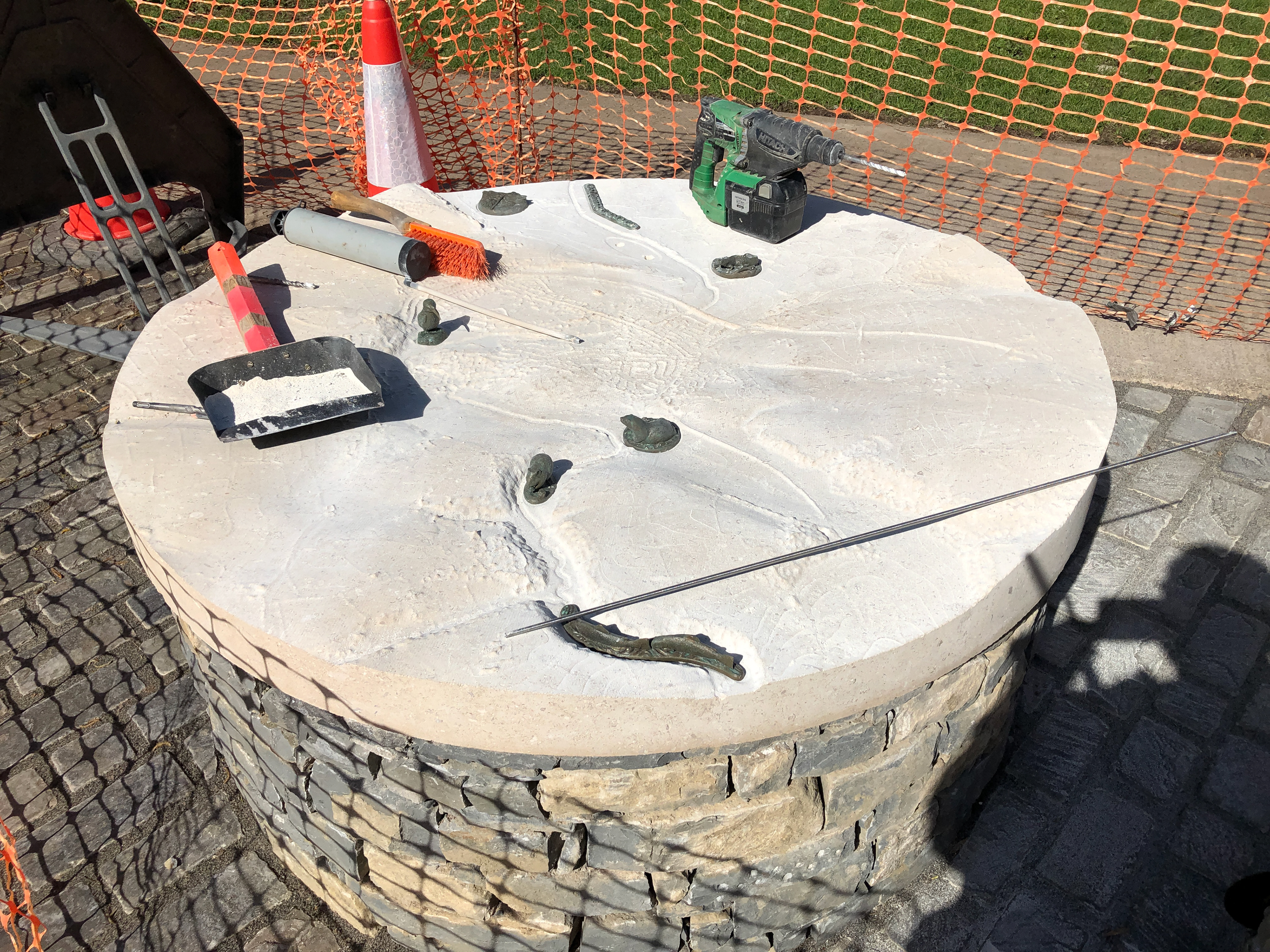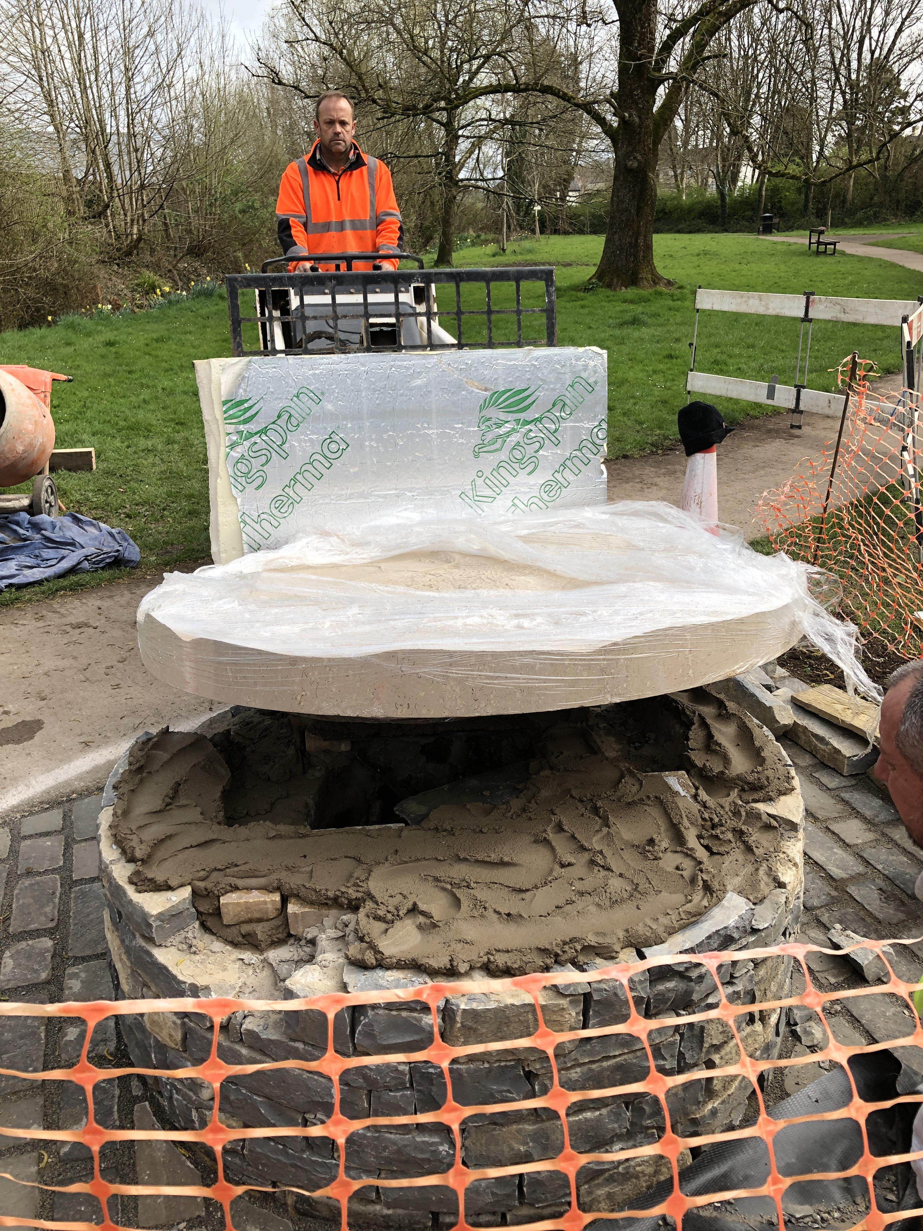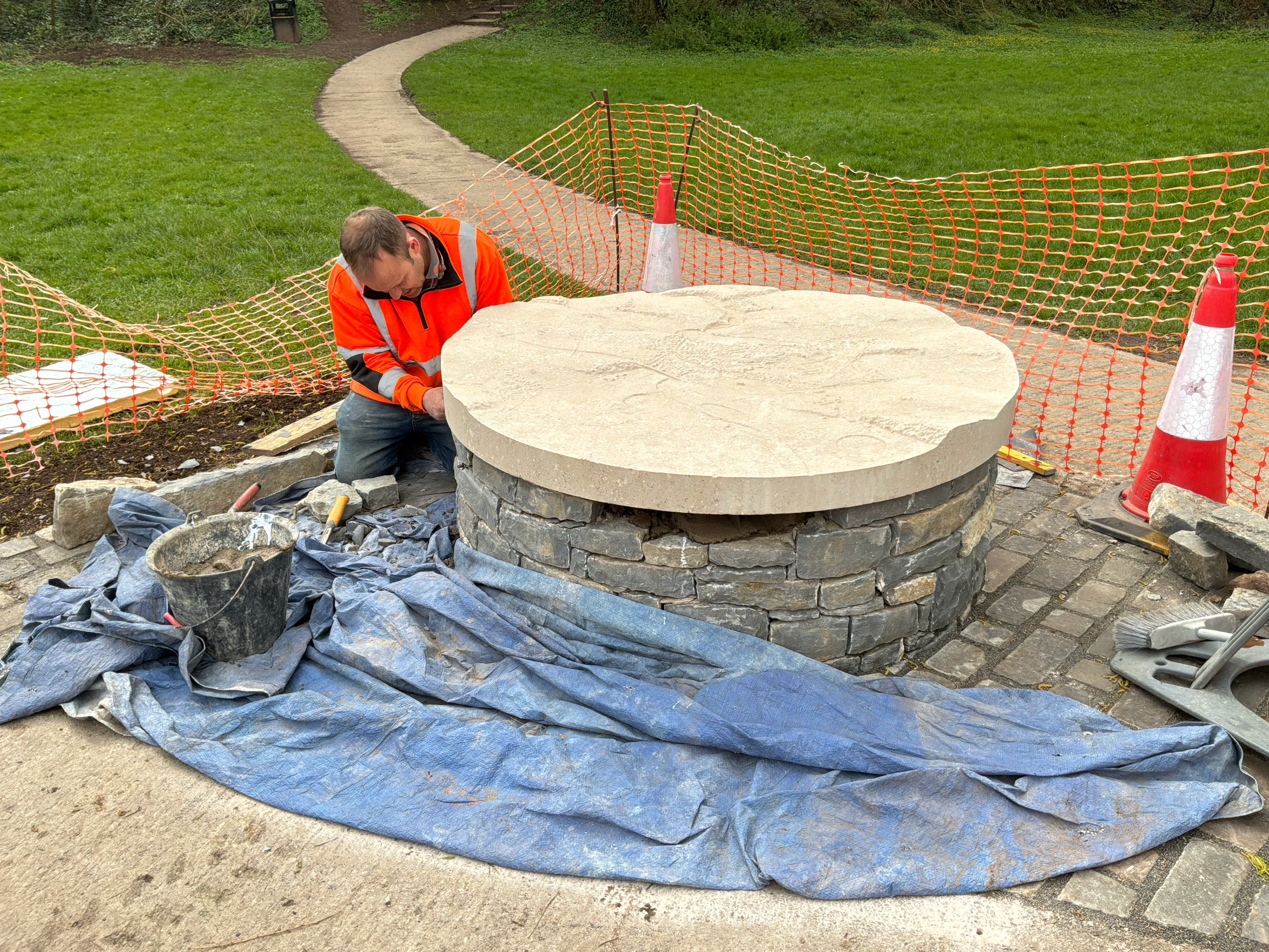 Built from local Blue lias stone the plinth , and surrounding cobbles, were constructed by fantastic stonemason Jon Wilson.