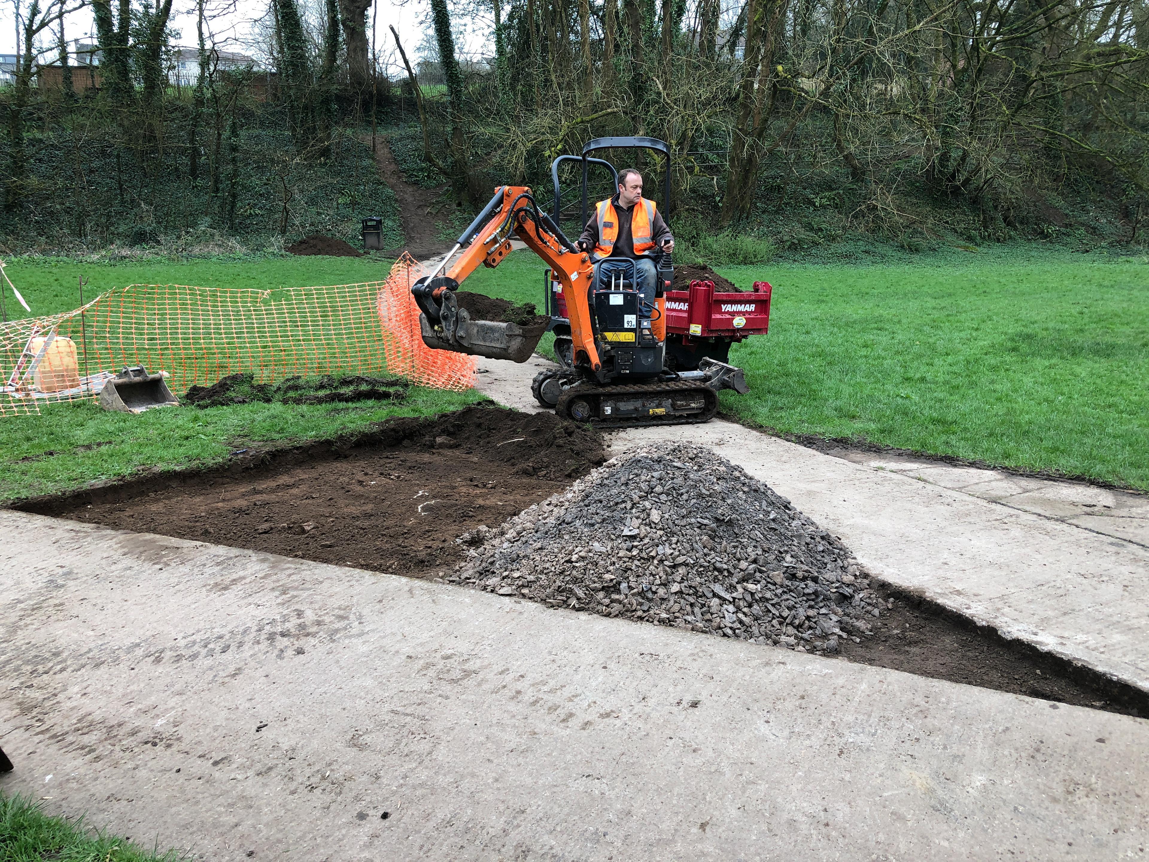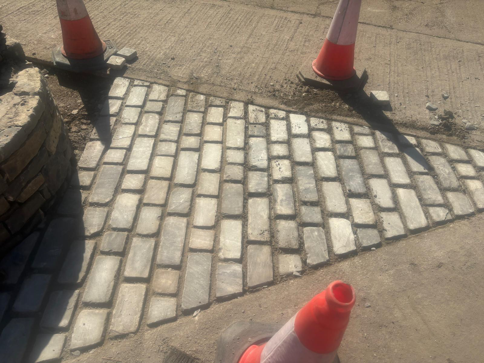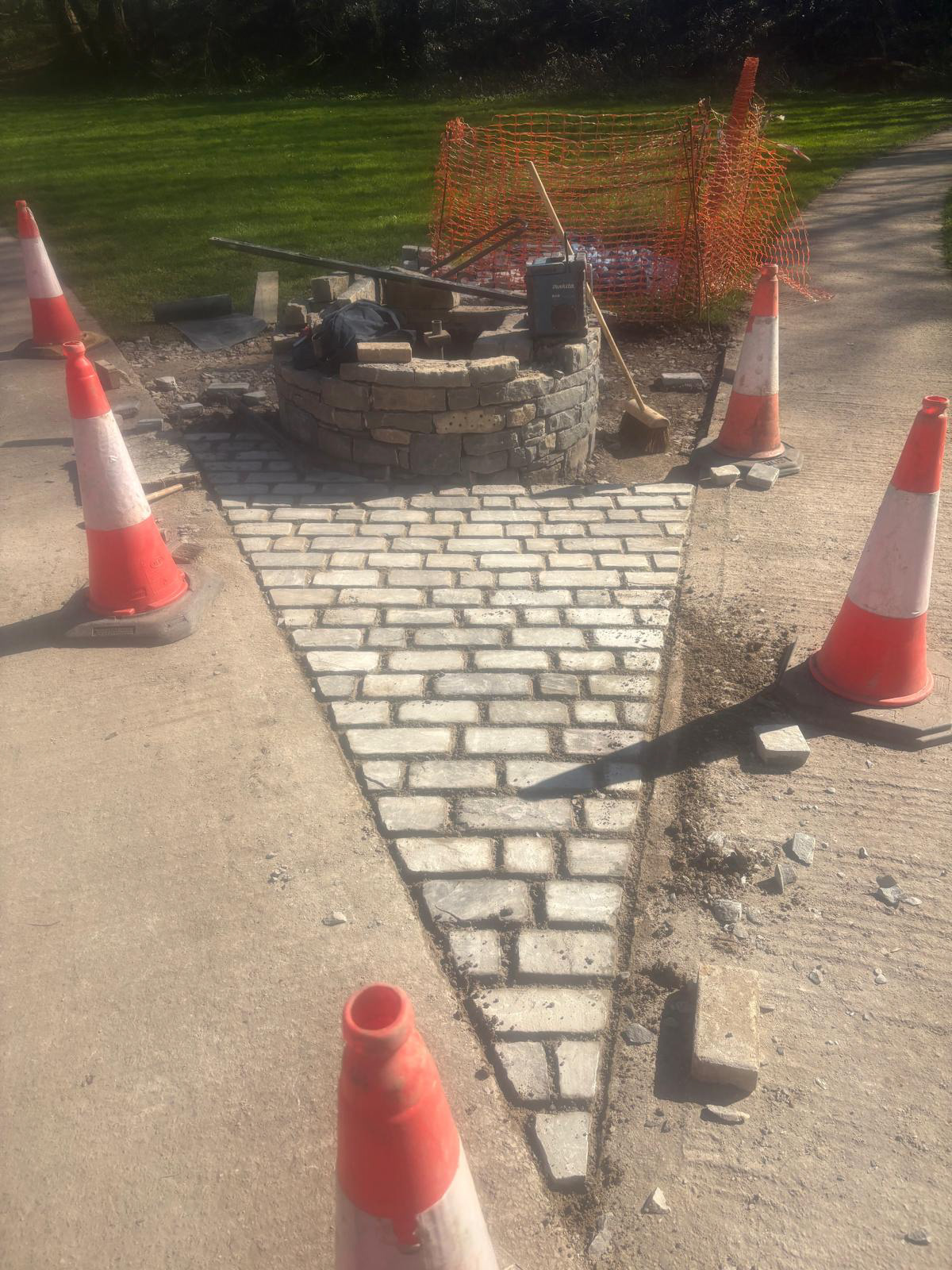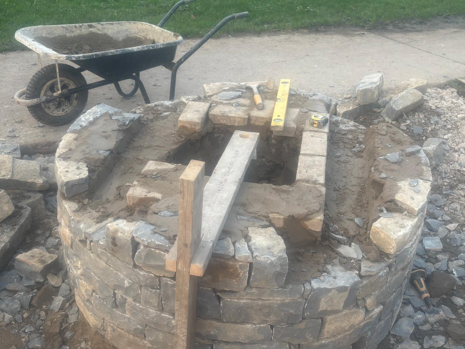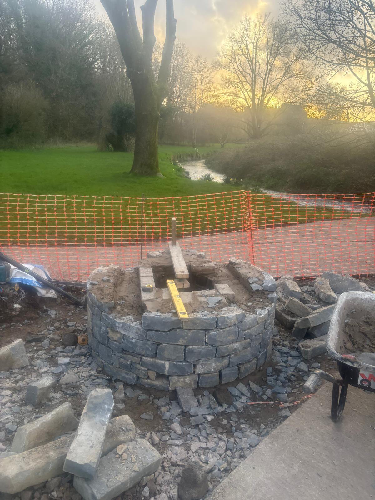 Built from local Blue lias stone the plinth , and surrounding cobbles, were constructed by fantastic stonemason Jon Wilson.