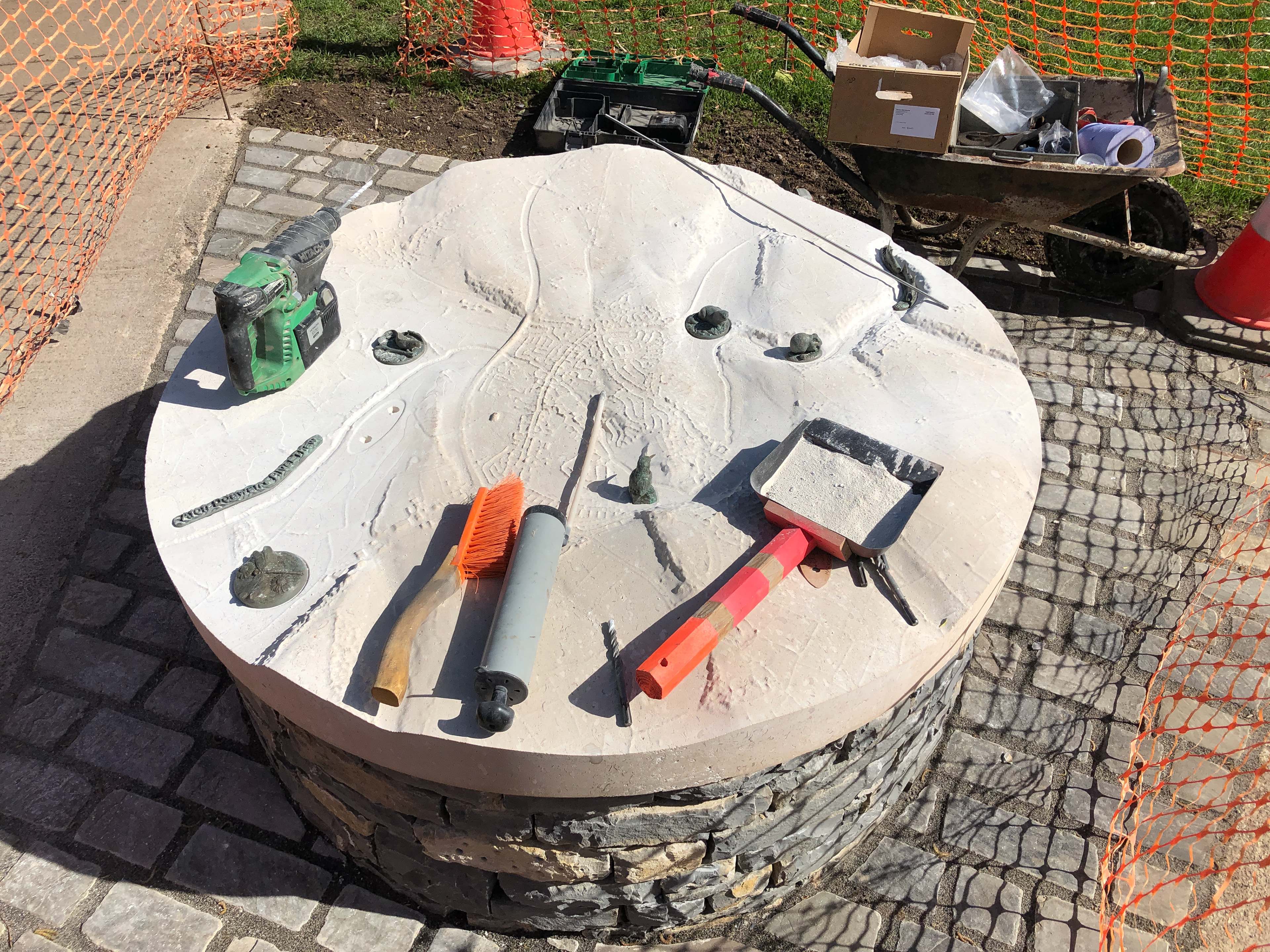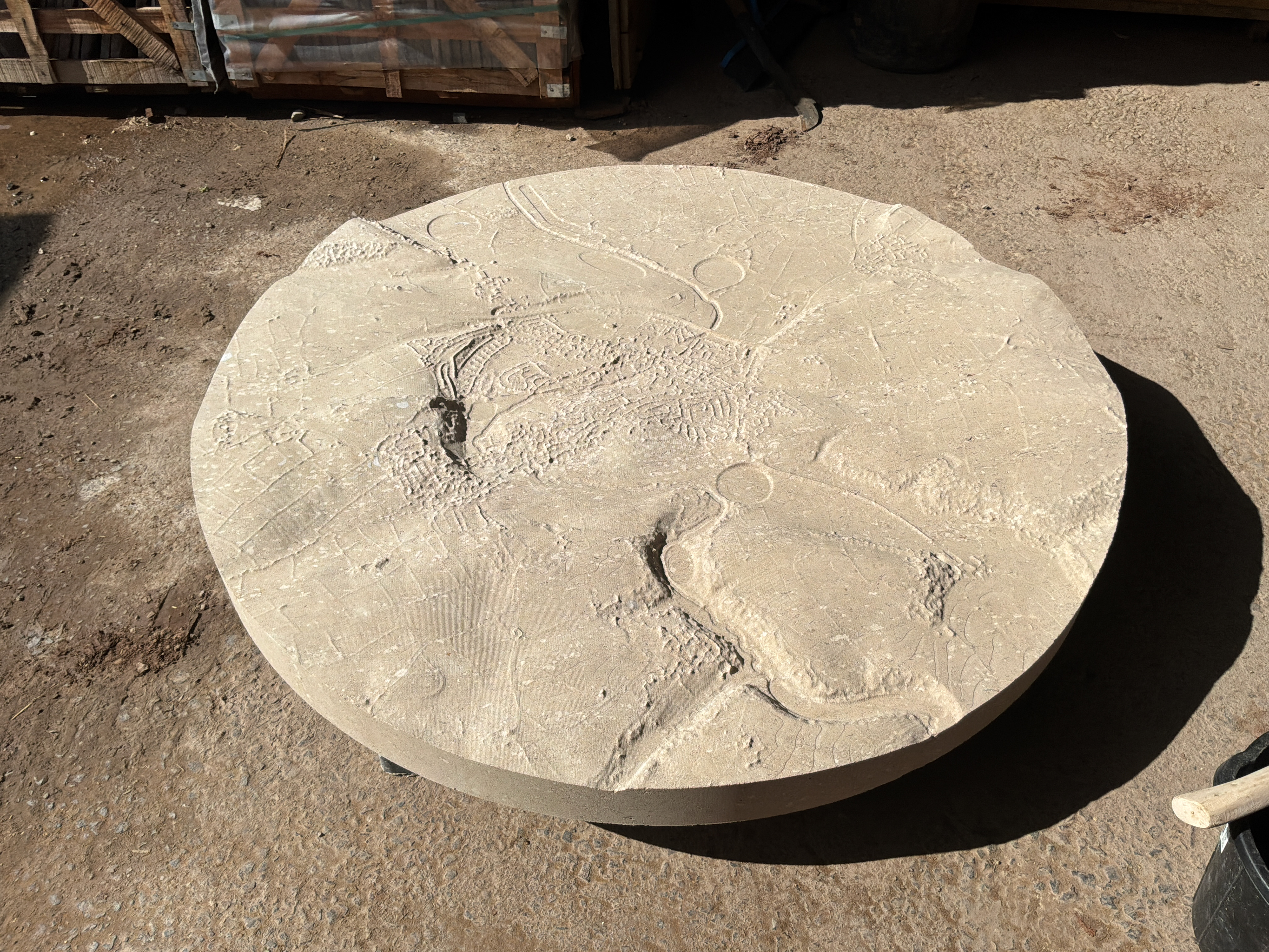 Based on Lidar data of the area and CNC milled from a single piece of Portland stone by Abbey Masonry the map took 9 days to mill.