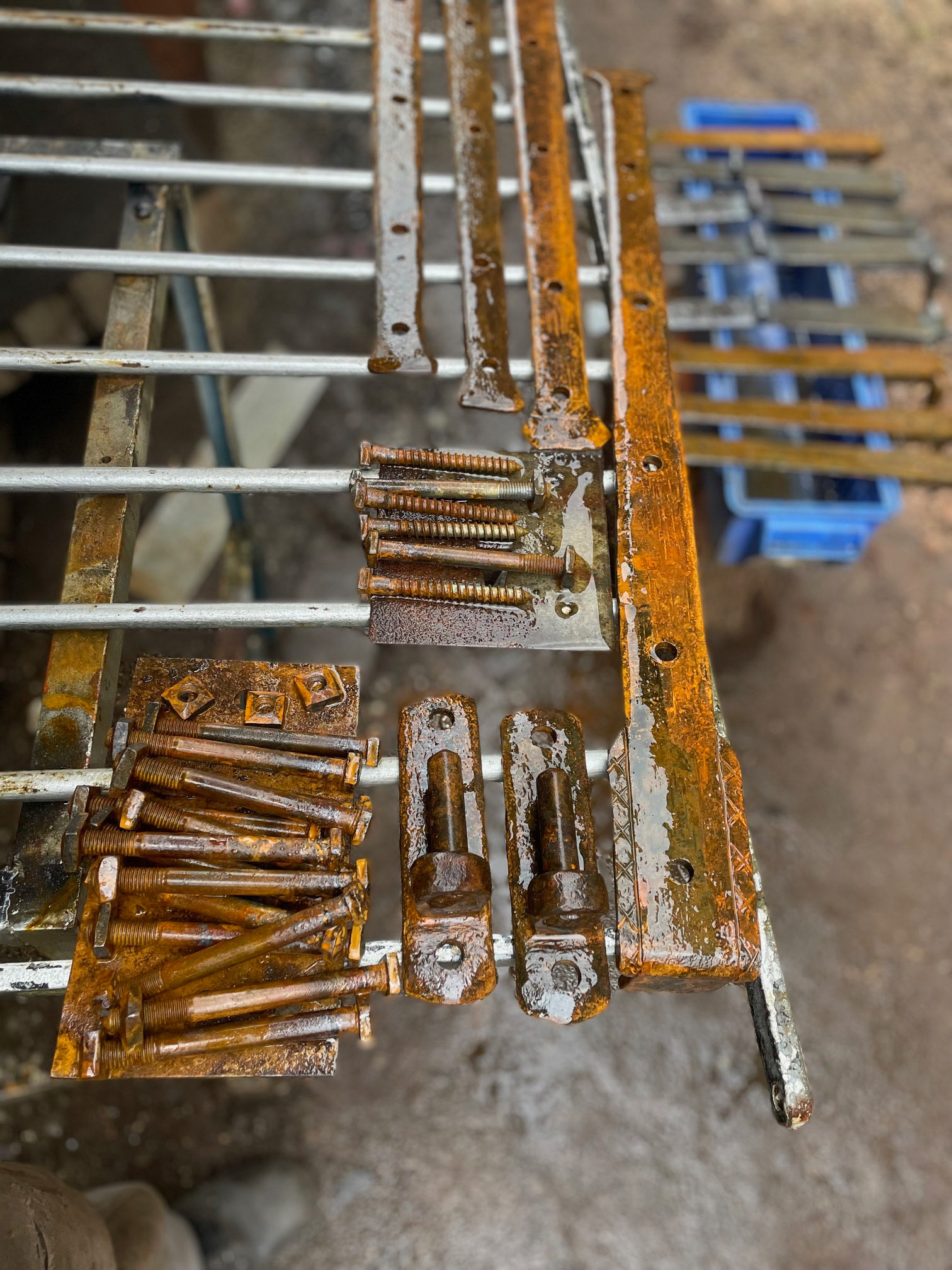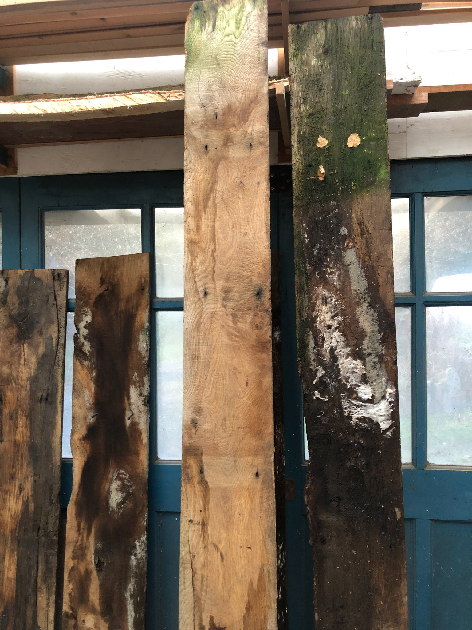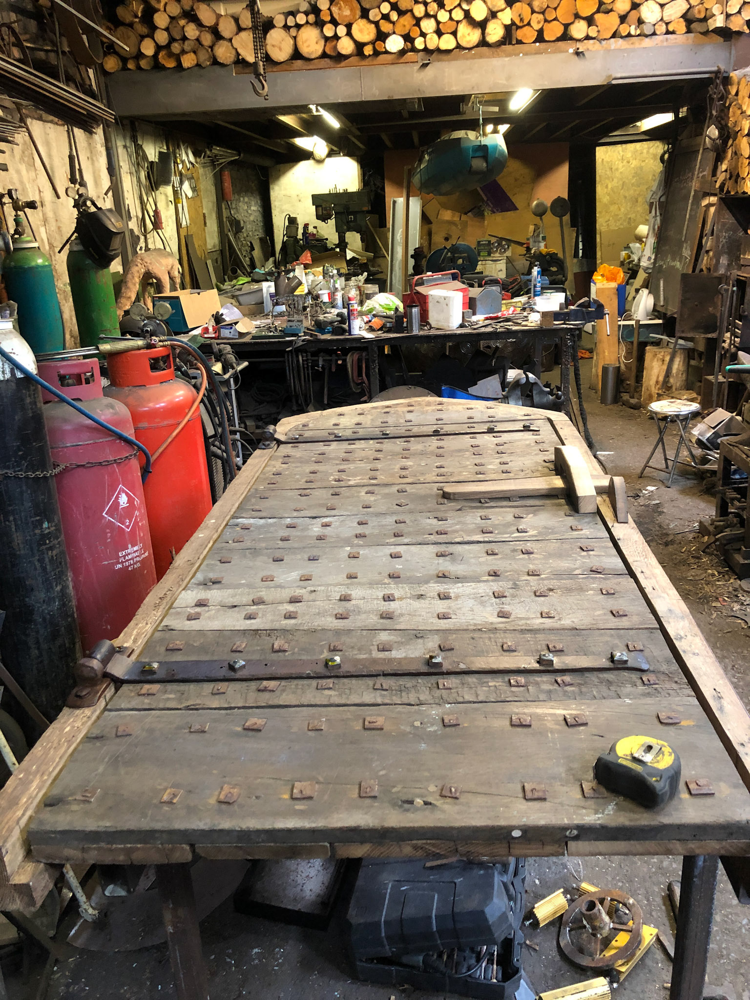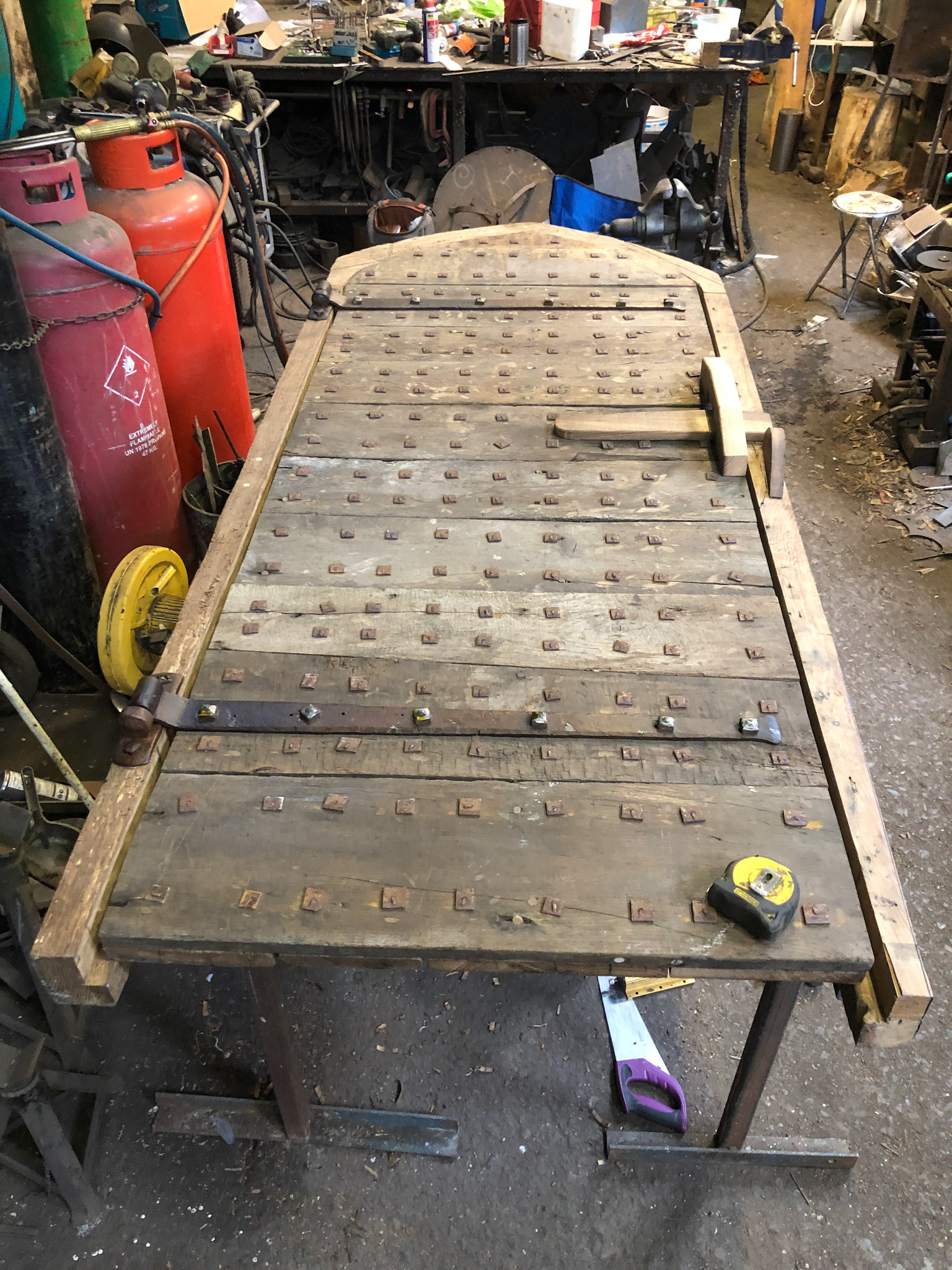 Something a little different! Commissioned by CADW for the stewards room at Tretower court this door, pair of shutters and partition were produced from reclaimed oak boards with bespoke hinges forged by Glen Adams of Horizon forge. Installed Feb 2024